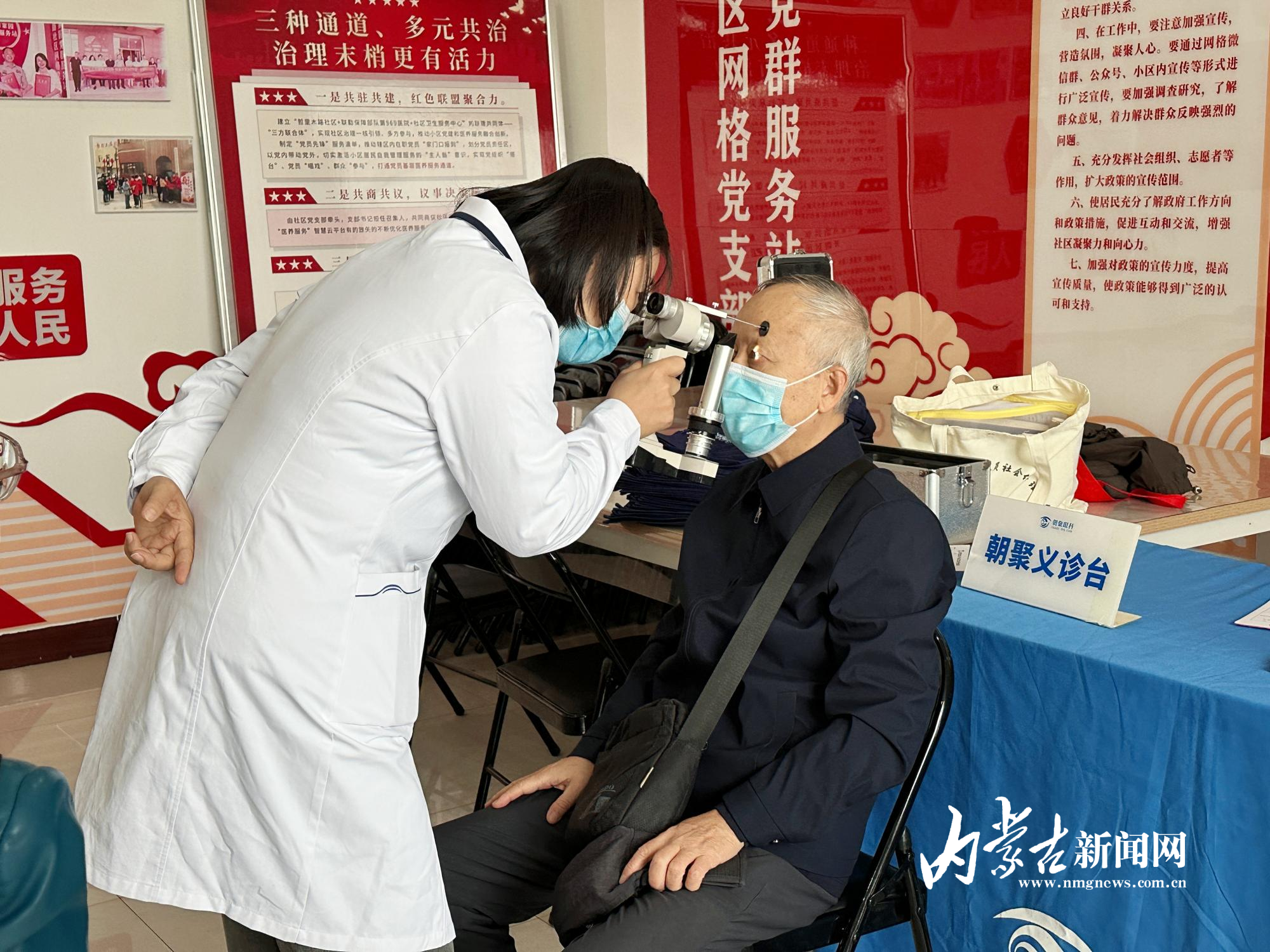 “醫(yī)生,我最近看報紙總覺得字發(fā)虛,是不是白內障又加重了?”“您別著急,先坐好,我?guī)湍屑毑椴檠鄣??!?0月10日上午,呼和浩特市新城區(qū)海拉爾路街道哲里木路社區(qū)戎輝小區(qū)活動室內暖意融融,醫(yī)護人員正耐心地為居民做眼部檢查。當日,哲理木路社區(qū)聯合內蒙古朝聚眼科醫(yī)院在這里開展眼科義診活動。