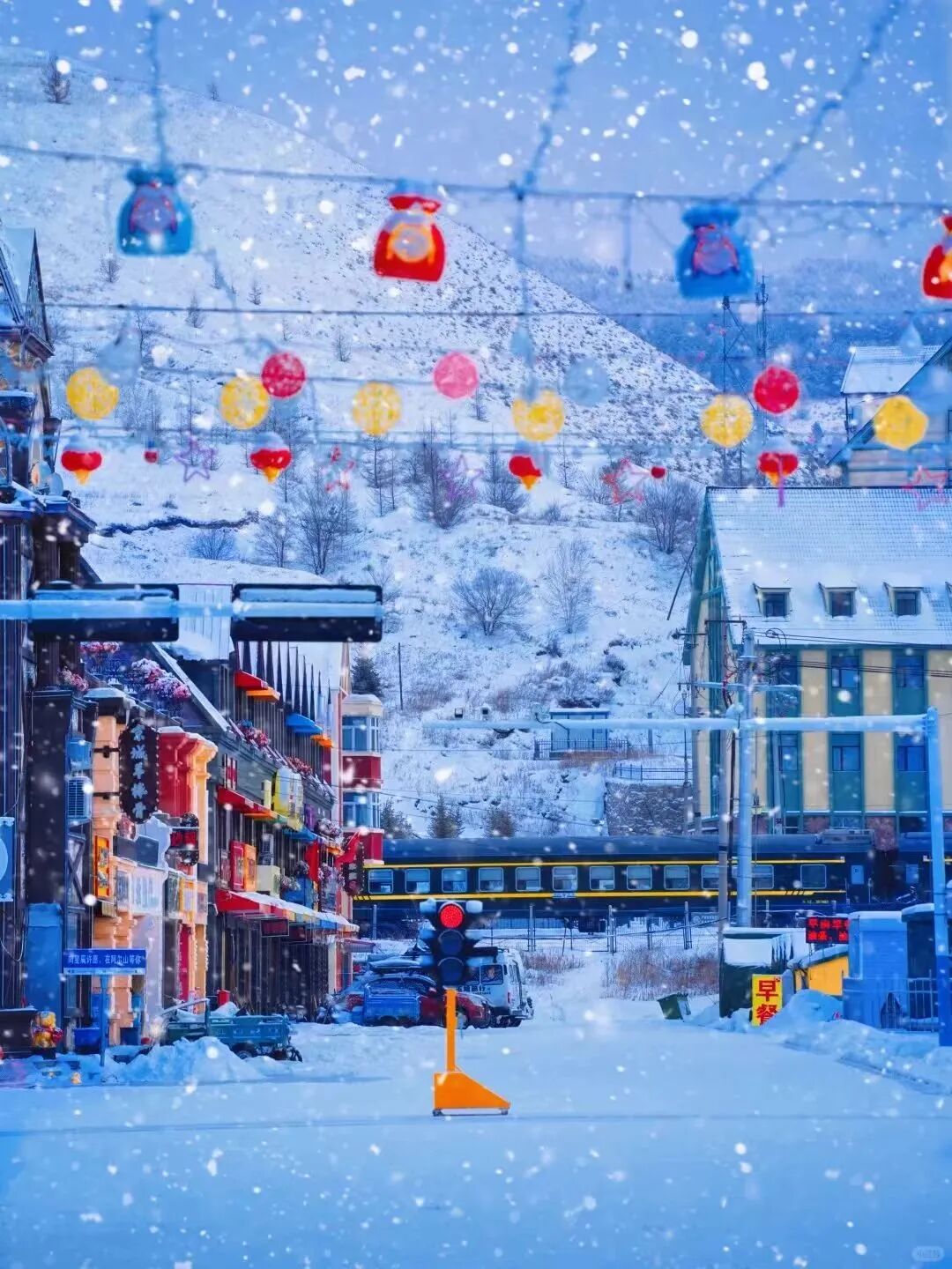 登上白狼峰觀景臺(tái),俯瞰一望無(wú)際的林海雪原,夕陽(yáng)西下時(shí),整片雪原被染成溫柔的金色,寒風(fēng)掠過(guò),雪花漫舞,這一刻的壯闊,足以治愈所有煩惱。走進(jìn)阿爾山雪村,木刻楞房頂著圓滾滾的“雪蘑菇”,紅燈籠在白雪中搖曳,晚上燈光一亮,暖黃色的光灑在雪上,感覺(jué)自己在童話(huà)里 。