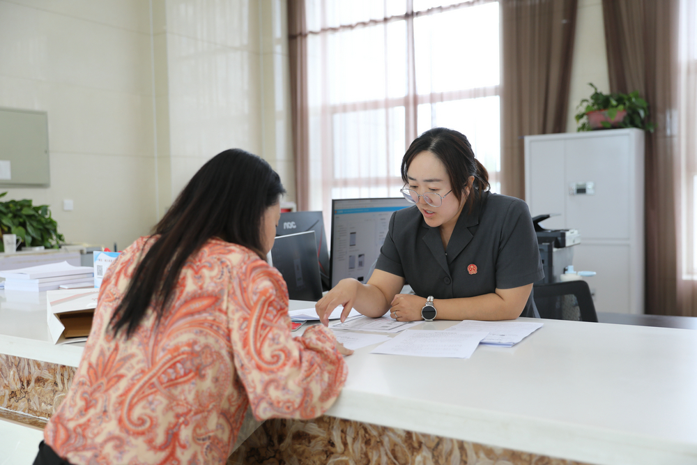 杭錦后旗人民法院工作人員耐心為群眾進行講解