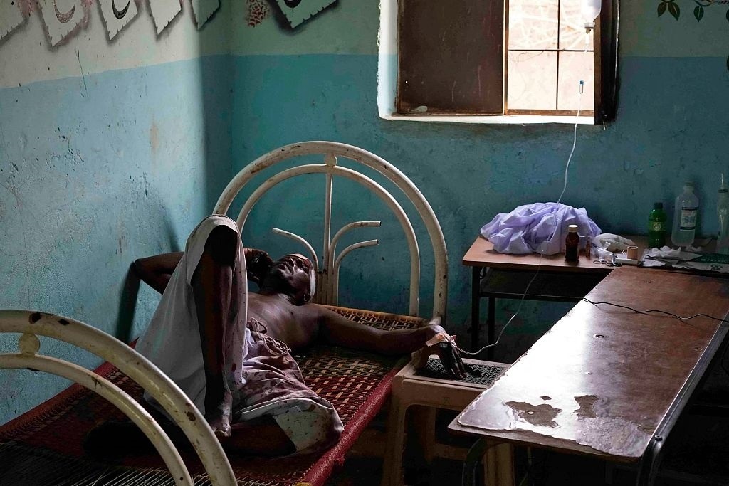 當(dāng)?shù)貢r間2023年6月6日,蘇丹恩圖曼,一名受傷的蘇丹男子躺在床上。當(dāng)日,首都喀土穆爆發(fā)了激烈的戰(zhàn)斗。