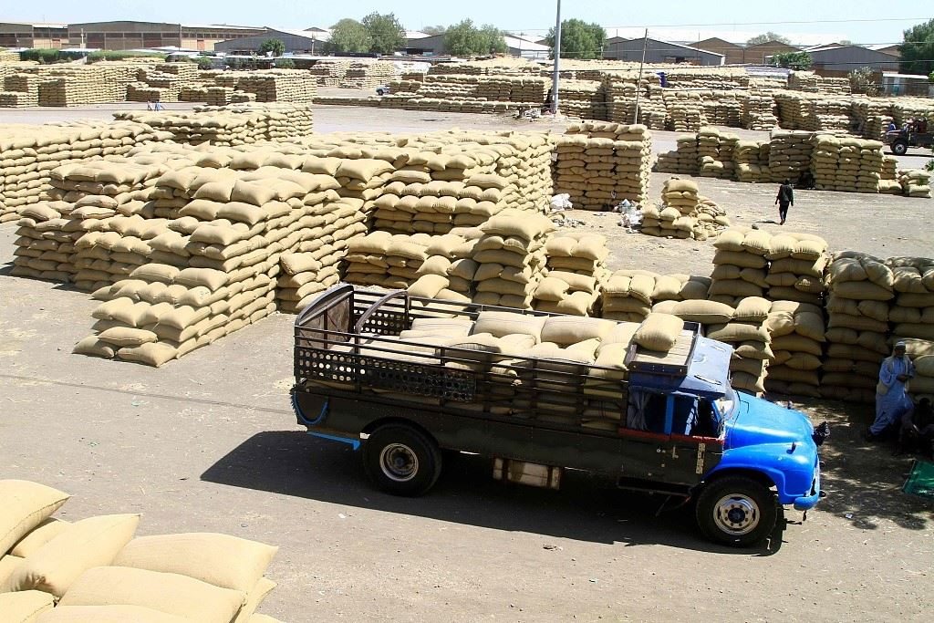當(dāng)?shù)貢r間2024年2月22日,蘇丹東部杰達雷夫市,卡車在一個市場里運送谷物。聯(lián)合國糧食計劃署表示,蘇丹長期武裝沖突導(dǎo)致當(dāng)?shù)亟^大多數(shù)人都面臨饑餓。