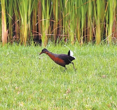 一只正在友誼廣場(chǎng)覓食的魯氏秧雞。 本報(bào)記者 沈小曉攝