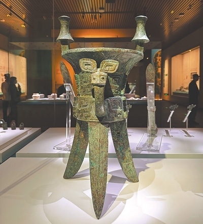殷墟位于河南安陽市西北郊,是中國第一個(gè)有文獻(xiàn)記載并經(jīng)甲骨文及考古發(fā)掘所證實(shí)的商代晚期都城遺址,也是世界青銅文明的重要代表。殷墟博物館與殷墟宗廟宮殿區(qū)隔河相望,是全景式展現(xiàn)商文明的國家重大考古專題博物館。圖為殷墟博物館里展出的殷墟婦好墓出土的銅斝。人民網(wǎng)俄文專家 葉列娜·達(dá)維多娃攝 殷墟博物館是一座歷史文化的寶庫。在這里,我近距離地觀察一件件青銅器,仿佛看到其上閃爍著的中國古人智慧的火花;我端詳一片片的甲骨,試圖解讀那些古老的文字,仿佛在與中國古人跨越時(shí)空對(duì)話。在這里,我看到了考古學(xué)家如何不遺余力地保護(hù)歷史,也觀察到年輕的甲骨文愛好者們不斷用新鮮創(chuàng)意為文物保護(hù)注入新的生命力,這份傳承讓我深受觸動(dòng)。