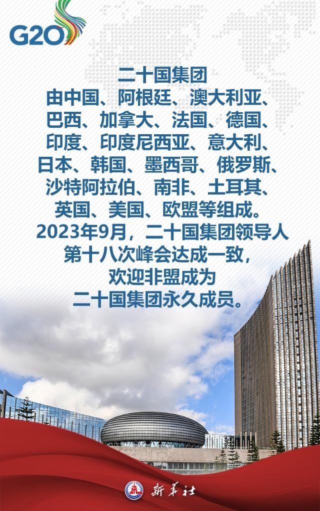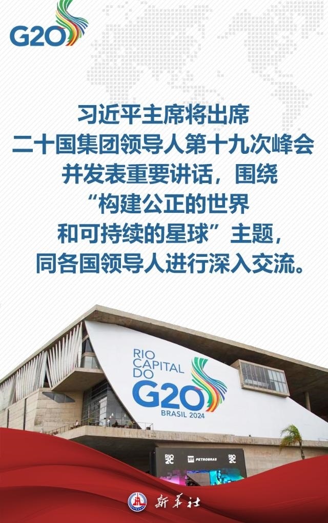 應(yīng)巴西聯(lián)邦共和國總統(tǒng)盧拉邀請,國家主席習(xí)近平將于11月17日至21日赴里約熱內(nèi)盧出席二十國集團(tuán)(G20)領(lǐng)導(dǎo)人第十九次峰會(huì)并對(duì)巴西進(jìn)行國事訪問。作為全球經(jīng)濟(jì)治理重要平臺(tái),二十國集團(tuán)有哪些成員?機(jī)制架構(gòu)有何特點(diǎn)?此次峰會(huì)有哪些看點(diǎn)?你想知道的都在這里——