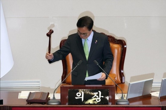 最終,在7日下午的國(guó)會(huì)全體會(huì)議上,絕大多數(shù)執(zhí)政黨議員先是對(duì)涉總統(tǒng)夫人的“金建希特檢法”投下反對(duì)票將其否決,隨后紛紛退場(chǎng),拒絕參加接下來(lái)的總統(tǒng)彈劾動(dòng)議案表決,導(dǎo)致該動(dòng)議案因投票人數(shù)不足未獲通過(guò)。