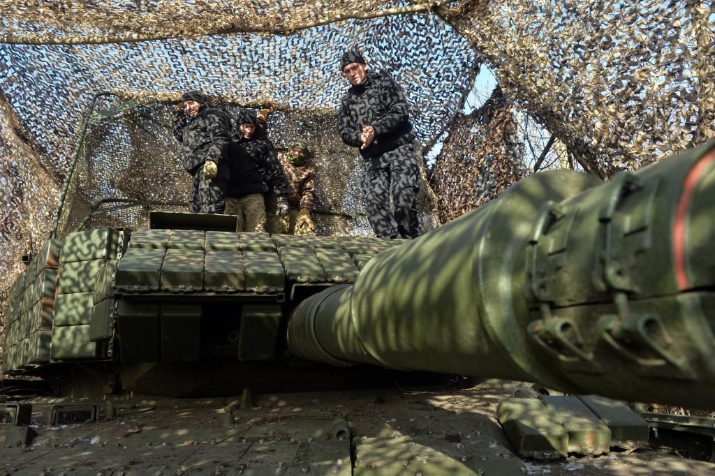 2月9日,烏軍第5獨立重型機械化旅第1坦克營士兵在檢查坦克。新華社發(fā)(彼得·德魯克攝)
