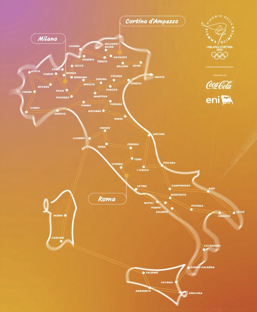 根據(jù)米蘭冬奧會組委會公布的火炬?zhèn)鬟f路線,圣火將在意大利境內(nèi)繼續(xù)傳遞約1.2萬公里,途經(jīng)全國全部20個大區(qū)、300多個市鎮(zhèn),最終將于2026年2月6日抵達米蘭冬奧會開幕式現(xiàn)場——圣西羅體育場。