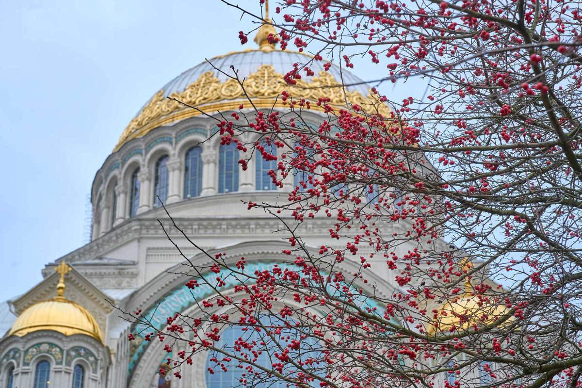 這是2025年11月30日在俄羅斯喀瑯施塔得拍攝的海軍大教堂。(圖片來源:新華社)