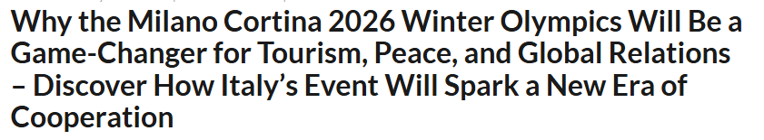 文章認(rèn)為,2026年米蘭-科爾蒂納冬季奧運(yùn)會舉辦的意義遠(yuǎn)不止于爭奪金牌,還將有力推動全球旅游業(yè)復(fù)蘇、促進(jìn)和平理念傳播,并通過體育運(yùn)動將不同文化緊密連接。