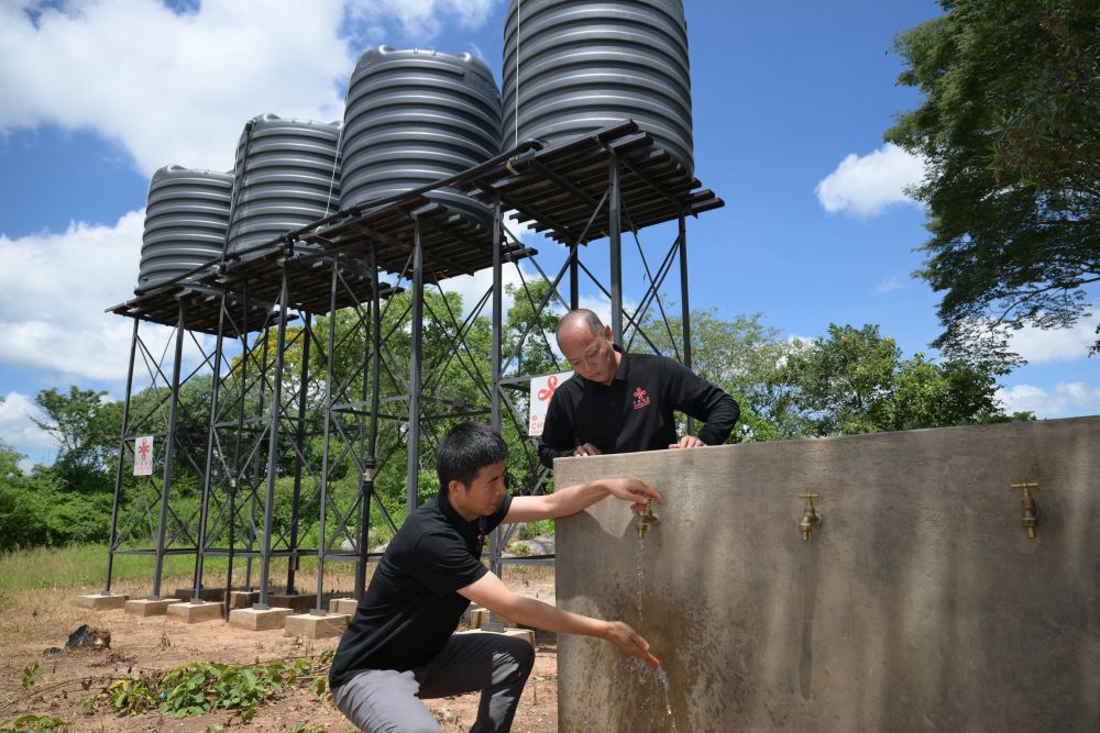 1月26日,在津巴布韋中馬紹納蘭省沙姆瓦地區(qū)津迪村,中國(guó)援津第四期高級(jí)農(nóng)業(yè)專家組專家在一處儲(chǔ)水點(diǎn)檢查水龍頭。新華社記者 楊光 攝
