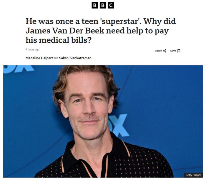 中新網(wǎng)2月14日電 據(jù)英國(guó)廣播公司(BBC)報(bào)道,美國(guó)演員詹姆斯·范德比克在20世紀(jì)90年代和21世紀(jì)初成名。憑借在青春成長(zhǎng)劇《戀愛(ài)時(shí)代》中的表現(xiàn),范德比克走上了一些最熱門的紅毯,甚至被稱為“新晉超級(jí)巨星”。但晚年遭遇不幸時(shí),他的家人不得不依靠朋友和粉絲的善意來(lái)獲得經(jīng)濟(jì)援助,這不僅揭示了許多演員岌岌可危的經(jīng)濟(jì)狀況,也揭示了數(shù)百萬(wàn)普通美國(guó)人為支付醫(yī)療費(fèi)用而苦苦掙扎的困境。