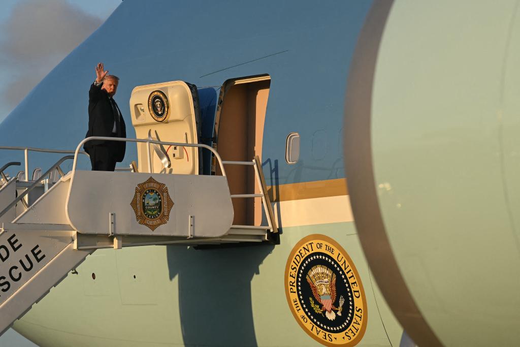 這是3月9日特朗普準(zhǔn)備登上總統(tǒng)專(zhuān)機(jī),從佛羅里達(dá)州返回首都華盛頓。法新社圖片