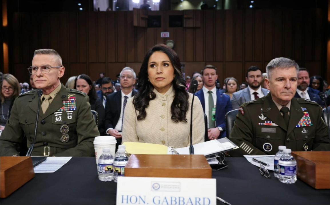 加巴德3月18日出席國(guó)會(huì)參議院情報(bào)特別委員會(huì)就美國(guó)所面臨“全球安全威脅”舉行的年度聽(tīng)證會(huì) 圖源:美國(guó)全國(guó)廣播公司(NBC)報(bào)道截圖