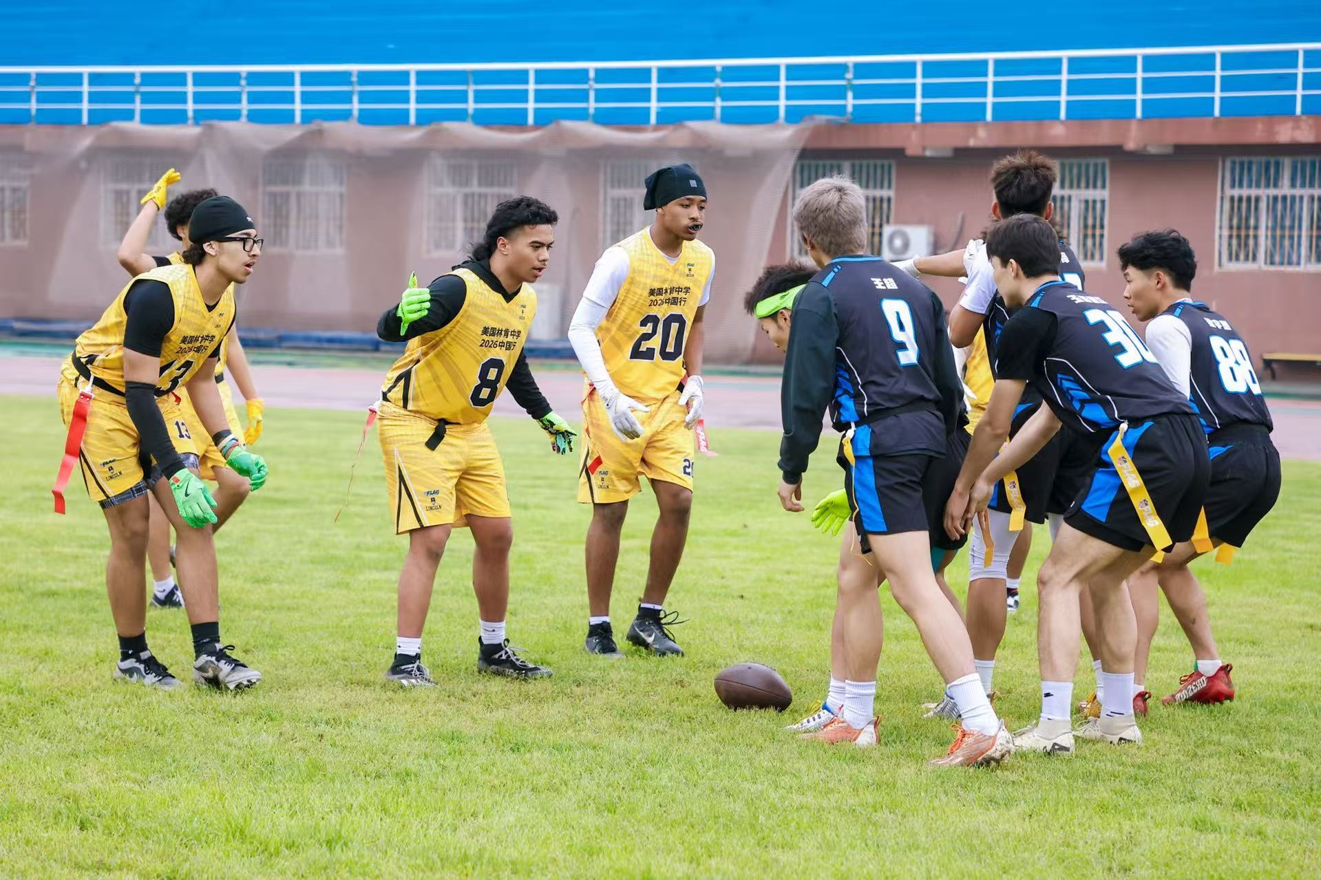 美國華盛頓州塔科馬市林肯中學(xué)腰旗橄欖球隊到訪北京首都體育學(xué)院 與該校的腰旗橄欖球社團展開友誼賽