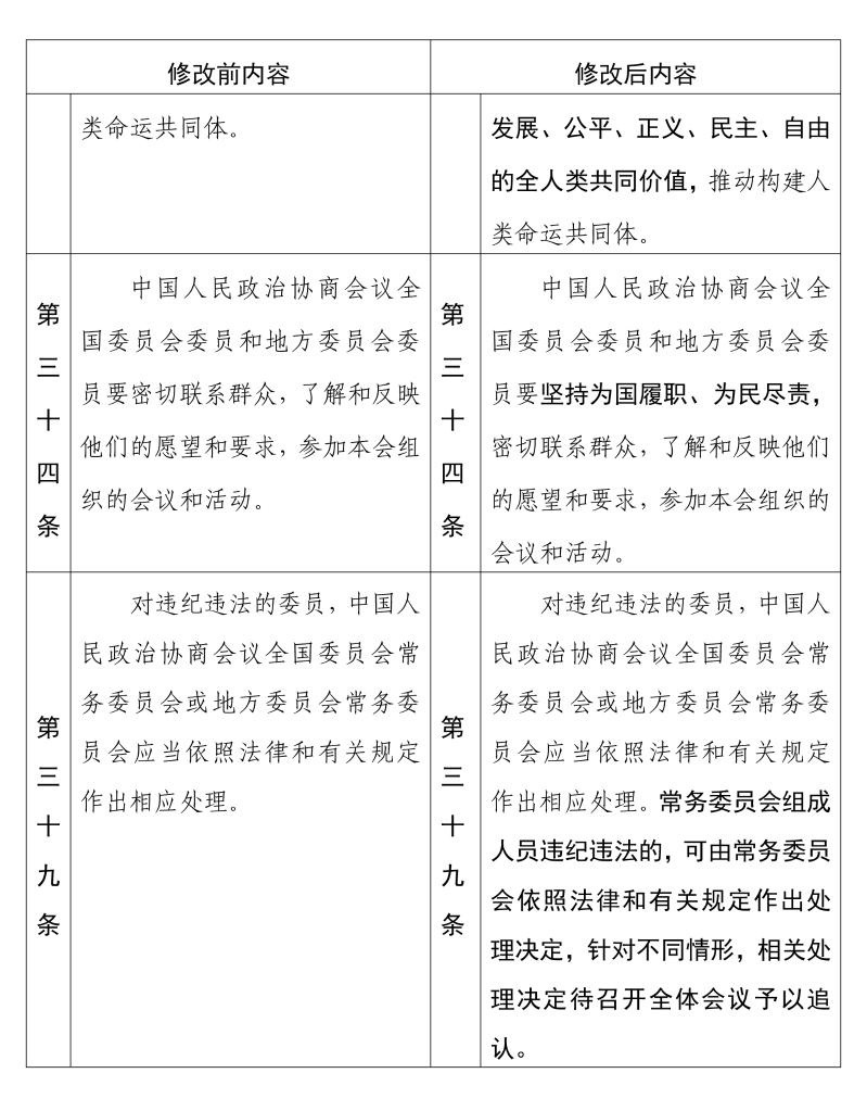 中國人民政治協(xié)商會議章程 修改前后內(nèi)容對照表(10) 新華社發(fā)