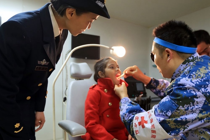 2019年12月9日,在“和平方舟”號醫(yī)院船上,口腔科醫(yī)生給沁做檢查。新華社發(fā)(吳煒權(quán) 攝)