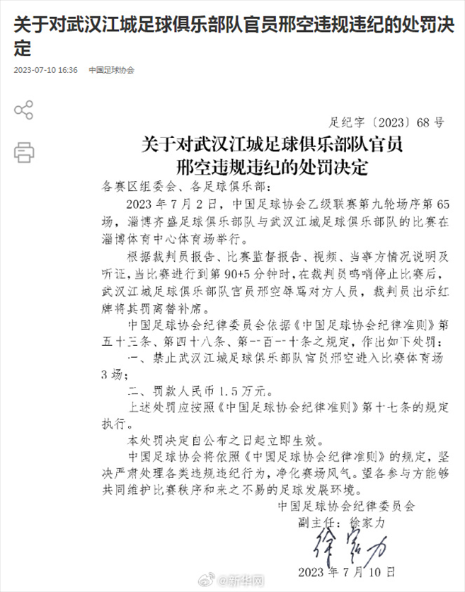 ·中國足協(xié)再開罰單,兩名俱樂部官員因違規(guī)違紀被罰。