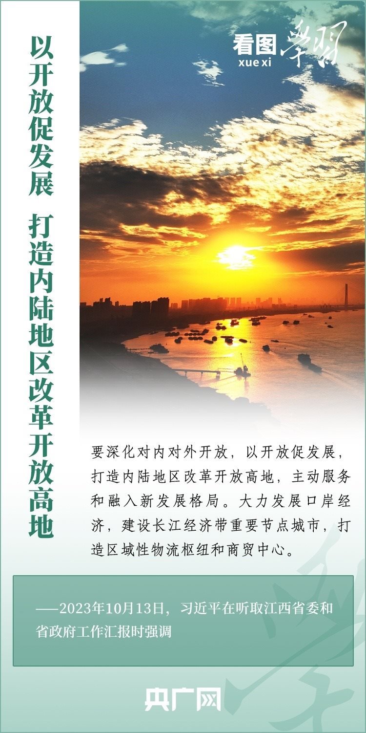 10月10日至13日,習近平總書記在江西九江、景德鎮(zhèn)、上饒等地,深入長江岸線、企業(yè)、歷史文化街區(qū)、農村等進行調研??倳洀娬{,江西要著眼高質量發(fā)展、綠色發(fā)展、低碳發(fā)展等新要求,解放思想、開拓進取,揚長補短、固本興新,努力在加快革命老區(qū)高質量發(fā)展上走在前、在推動中部地區(qū)崛起上勇爭先、在推進長江經濟帶發(fā)展上善作為,奮力譜寫中國式現(xiàn)代化江西篇章。一起來學習!