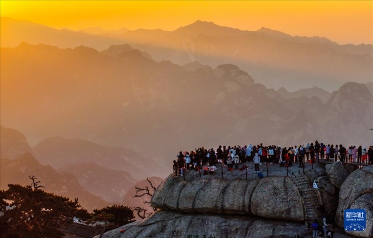 2023年12月31日,游客在位于陜西省渭南市的華山西峰賞景(無(wú)人機(jī)照片)。元旦假期期間,人們用各種方式樂(lè)享時(shí)光,迎接新年,歡度假期。新華社發(fā)(汪艷 攝)