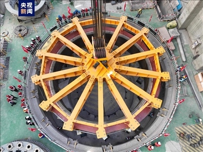 ·青海:黃河上游羊曲水電站1號(hào)機(jī)組定子吊裝成功。