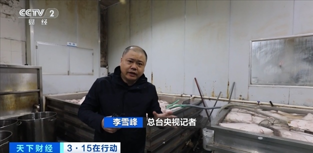 總臺央視記者 李雪峰:在企業(yè)的生產(chǎn)車間里,可以看到環(huán)境是十分惡劣。地面上污水橫流,夾雜著油污的水順著水渠一直涌向了地溝,生產(chǎn)車間里設(shè)備已是銹跡斑斑。