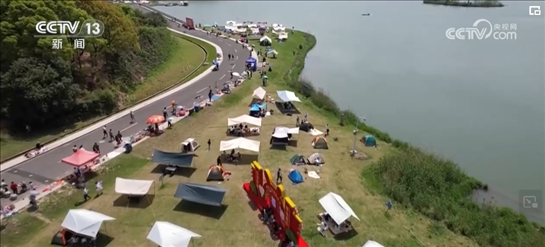 周末,在杭州拱墅運(yùn)河體育公園的露營區(qū),不少市民扎起輕便的帳篷,便攜桌上擺滿了水果零食。