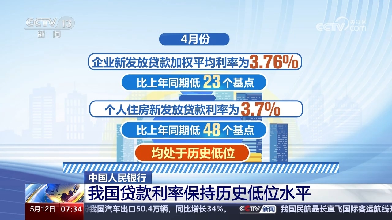 4月份企業(yè)新發(fā)放貸款加權(quán)平均利率為3.76%,比上年同期低23個(gè)基點(diǎn);個(gè)人住房新發(fā)放貸款利率為3.7%,比上年同期低48個(gè)基點(diǎn),均處于歷史低位。?
