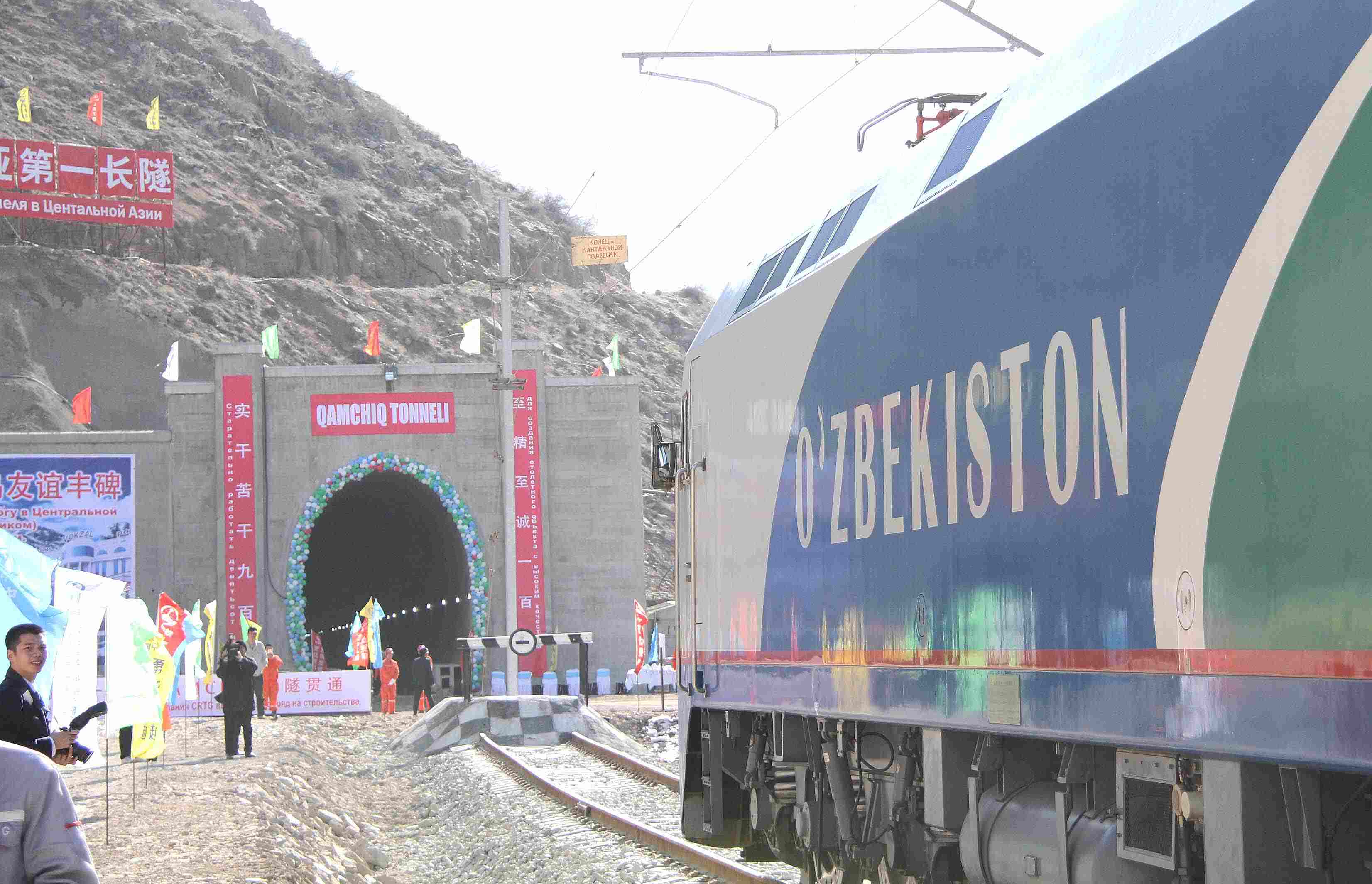 △ 2016年2月27日,一列專列停在烏茲別克斯坦安格連至琶布鐵路甘姆奇克隧道進(jìn)口。甘姆奇克隧道是中吉烏鐵路的重要一環(huán),對(duì)促進(jìn)烏茲別克斯坦經(jīng)濟(jì)社會(huì)發(fā)展和共建“一帶一路”倡議的實(shí)施具有重大意義。