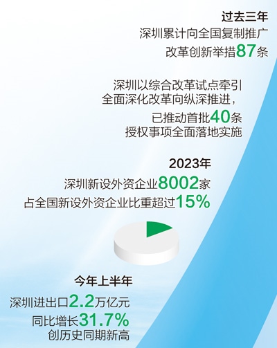 改革開放釋放澎湃動能。深圳發(fā)布支持外商投資生物醫(yī)藥領域、實施跨境貿易投資高水平開放政策試點等20條措施,出臺優(yōu)化國際化營商環(huán)境工作方案,持續(xù)提升對全球優(yōu)質要素資源的強大吸引力。去年全年,深圳新設外資企業(yè)8002家,占全國新設外資企業(yè)比重超過15%;今年上半年,深圳進出口總額2.2萬億元,同比增長31.7%,創(chuàng)深圳歷史同期新高。