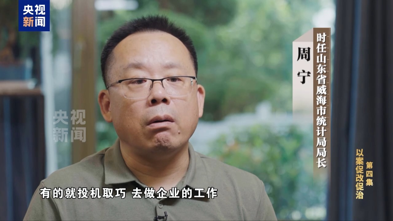 時(shí)任威海市統(tǒng)計(jì)局局長(zhǎng) 周寧:壓力還是比較大的,有的就投機(jī)取巧,去做企業(yè)的工作,說(shuō)你多報(bào)點(diǎn)數(shù),多報(bào)點(diǎn)什么。但是也有的是什么,每個(gè)月直接就代替企業(yè)報(bào)了,有這種情況。