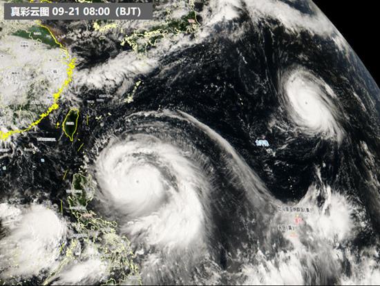 海上“雙臺共舞”的局面常見,但兩個超強臺風同現(xiàn)卻不多見,上次兩個超強臺風共存是在2015年8月19日至20日——“天鵝”和“艾莎尼”。