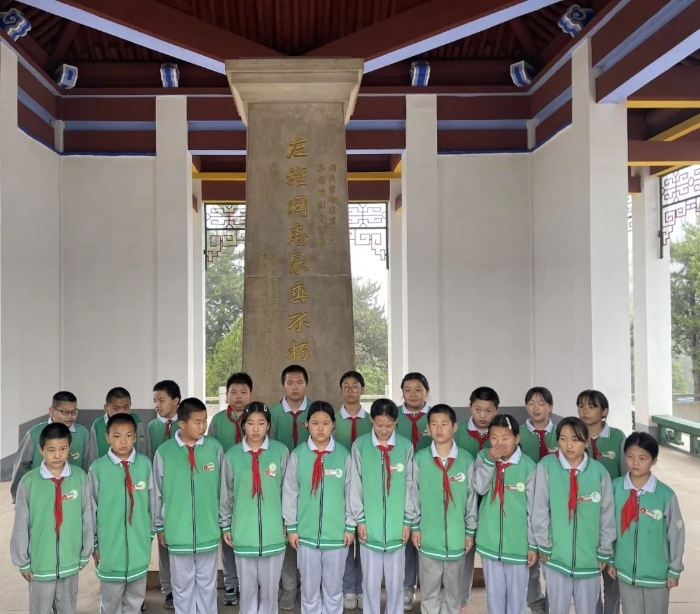 2025年5月23日,澤城九年一貫制學(xué)校五、六年級的學(xué)生舉行活動紀念左權(quán)將軍。(新華網(wǎng) 于楊 攝)