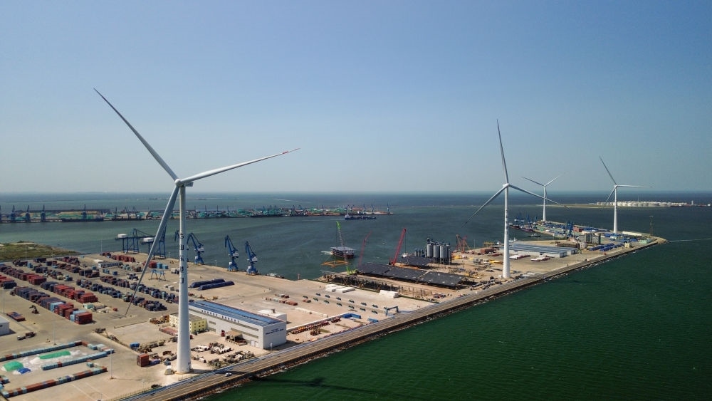 “4臺風(fēng)力發(fā)電機一年可發(fā)電約7000萬千瓦時,足以覆蓋碼頭設(shè)備及停靠船舶的用電需求,冗余電量還能上網(wǎng)銷售?!鄙綎|省港口集團濰坊港有限公司黨支部書記、總經(jīng)理孫超說,濰坊港已形成風(fēng)、光、氫“多能互補”的用能結(jié)構(gòu),每年可節(jié)省標煤2.1萬噸,減少二氧化碳排放5.7萬噸。