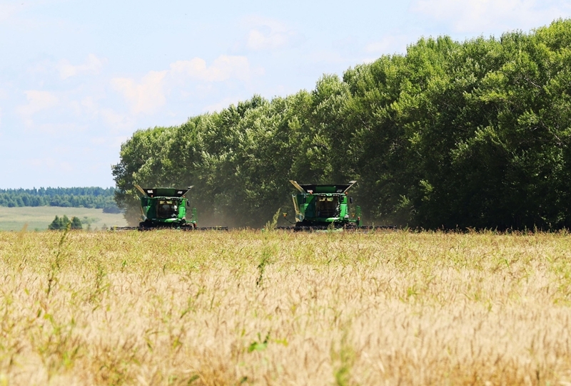 8月5日,在北大荒集團(tuán)黑龍江紅星農(nóng)場第二管理區(qū),大型收割機(jī)在搶收小麥。