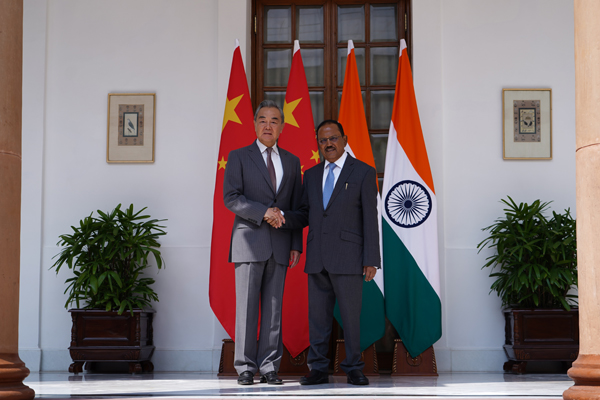 王毅強(qiáng)調(diào),歷史和現(xiàn)實(shí)一再證明,中印關(guān)系健康穩(wěn)定發(fā)展符合兩國人民根本利益,也是廣大發(fā)展中國家的共同期待。雙方應(yīng)按照兩國領(lǐng)導(dǎo)人戰(zhàn)略指引,秉持雙軌并進(jìn)、相互促進(jìn)、良性循環(huán)的思路看待和處理雙邊關(guān)系和邊界問題,通過對話溝通增進(jìn)互信,擴(kuò)大交流合作,共同推動在邊境管控、劃界談判、跨境交流等方面匯聚共識、明確方向、設(shè)定目標(biāo),妥善解決具體問題,取得更多積極進(jìn)展,為兩國關(guān)系改善發(fā)展不斷營造有利條件。