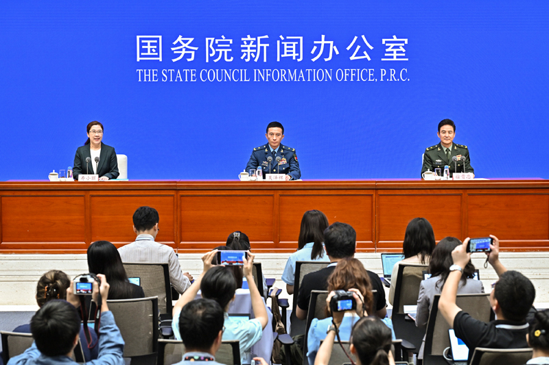 8月20日,國務(wù)院新聞辦公室在北京舉行新聞發(fā)布會,閱兵領(lǐng)導(dǎo)小組辦公室副主任、中央軍委聯(lián)合參謀部作戰(zhàn)局少將副局長吳澤棵,中國人民解放軍中部戰(zhàn)區(qū)閱兵指揮機構(gòu)辦公室常務(wù)副主任、政治工作部少將副主任徐貴忠介紹閱兵準(zhǔn)備工作有關(guān)情況,并答記者問。