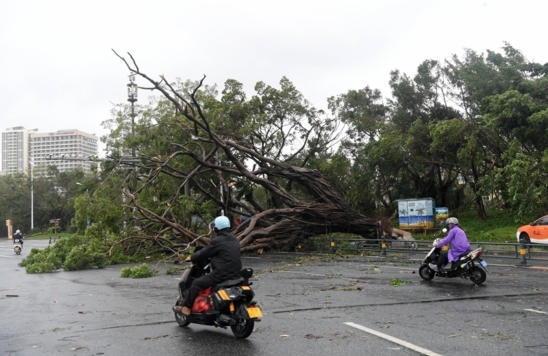 8月25日,在海南省三亞市吉陽(yáng)區(qū),市民從倒伏的樹(shù)木前經(jīng)過(guò)。
