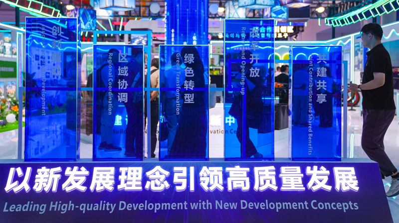 8月27日,參觀者在第十五屆中國-東北亞博覽會開放合作館內(nèi)參觀。