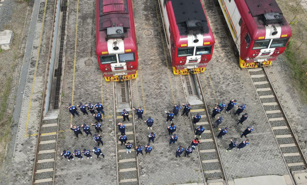 2025年8月19日,在肯尼亞內(nèi)羅畢非洲之星鐵路運(yùn)營(yíng)有限責(zé)任公司機(jī)務(wù)運(yùn)轉(zhuǎn)整備場(chǎng),中肯兩國(guó)鐵路工作者在機(jī)車前站列并組成“3000”字樣,以紀(jì)念蒙內(nèi)鐵路實(shí)現(xiàn)安全運(yùn)營(yíng)3000天(無人機(jī)照片)。新華社記者 楊光 攝