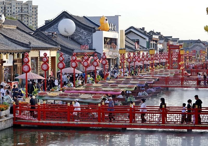 10月3日,游客在河北省唐山市豐南區(qū)河頭老街景區(qū)游玩。