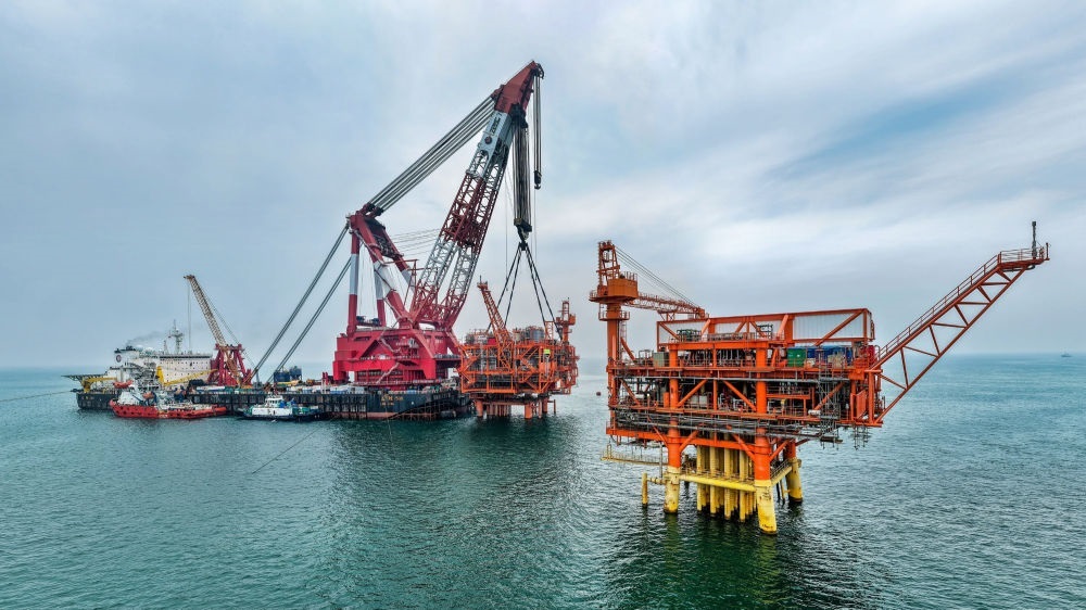 9月8日,墾利6-1油田10-1北區(qū)塊Ⅱ期開發(fā)項(xiàng)目油氣平臺在渤海海域完成海上安裝(無人機(jī)照片)。新華社發(fā)(杜鵬輝 攝)