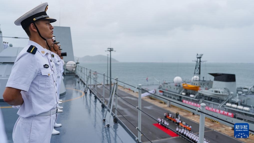 11月25日,中國海軍989編隊結(jié)束對越南為期4天的友好訪問,從越南金蘭港起程前往馬來西亞。這是官兵分區(qū)列隊。新華社發(fā)(王磊攝)