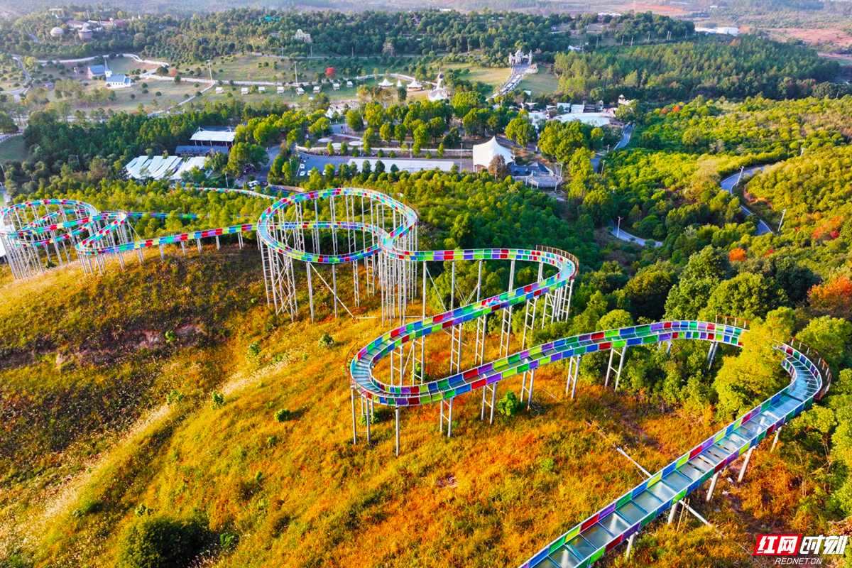 高空漂流、七彩滑道等網(wǎng)紅項目嵌于山林之間。