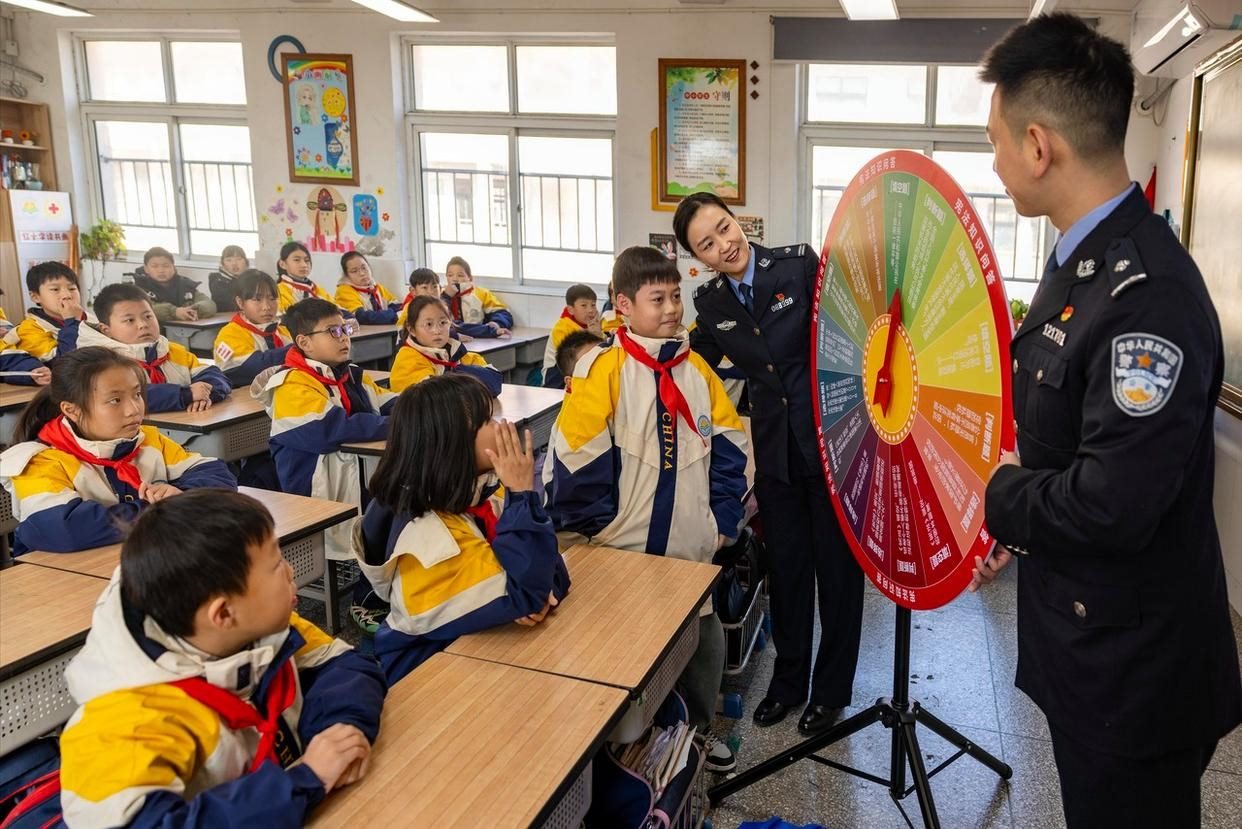 12月2日,安徽省舒城縣公安局網(wǎng)監(jiān)大隊(duì)聯(lián)合五顯派出所走進(jìn)五顯鎮(zhèn)中心學(xué)校課堂,為同學(xué)們帶來(lái)了一堂沉浸式、互動(dòng)式的法治教育課。(工人日?qǐng)?bào)通訊員 王可海 攝)