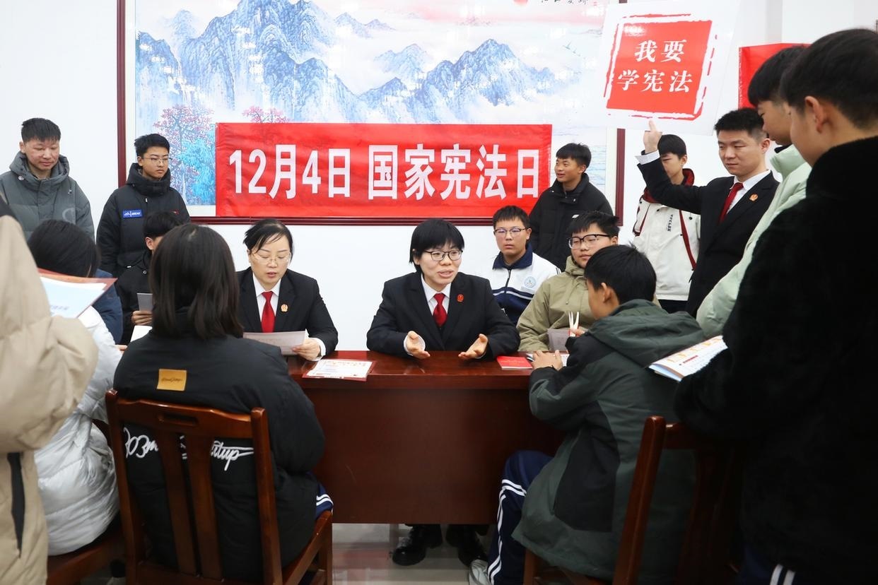 12月3日,山東省棗莊市市中區(qū)人民法院組織法官走進(jìn)校園,開(kāi)展主題宣傳活動(dòng),向?qū)W生普及憲法知識(shí)、宣傳法治觀念、弘揚(yáng)憲法精神。(工人日?qǐng)?bào)通訊員 孫中喆 攝)