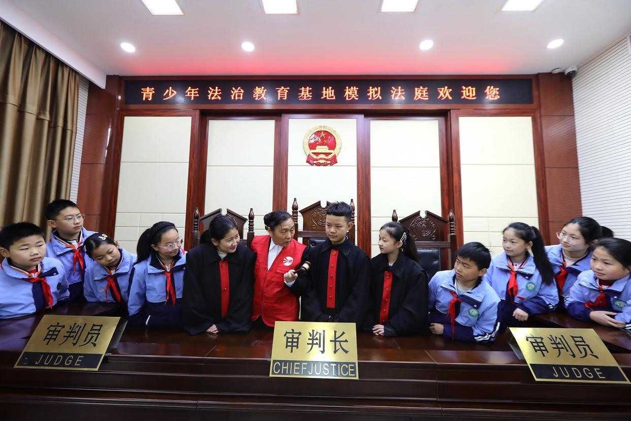 12月2日,孩子們?cè)趯W(xué)習(xí)憲法知識(shí)、體驗(yàn)“模擬法庭”,“沉浸式”感知法律的神圣與威嚴(yán),在潛移默化中接受法治教育,爭(zhēng)做一個(gè)學(xué)法、懂法、守法的新時(shí)代好公民。(工人日?qǐng)?bào)通訊員 李海濤 攝)
