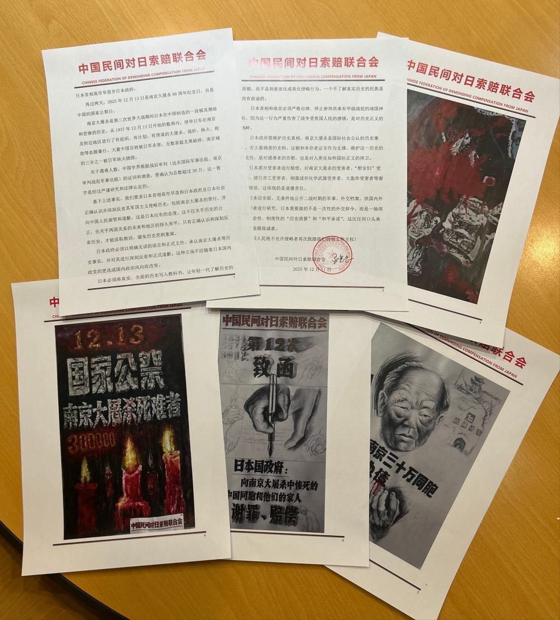 中國民間對日索賠聯(lián)合會(huì)成立于1992年,2006年在香港注冊,旨在促使日本政府向侵華戰(zhàn)爭中國受害者進(jìn)行謝罪、賠償。該組織自2014年開始,每逢南京大屠殺死難者國家公祭日,必通過日本駐華大使館致信日本政府及其首相,要求日本政府就南京大屠殺謝罪、賠償,此次為第12次致信。(完)