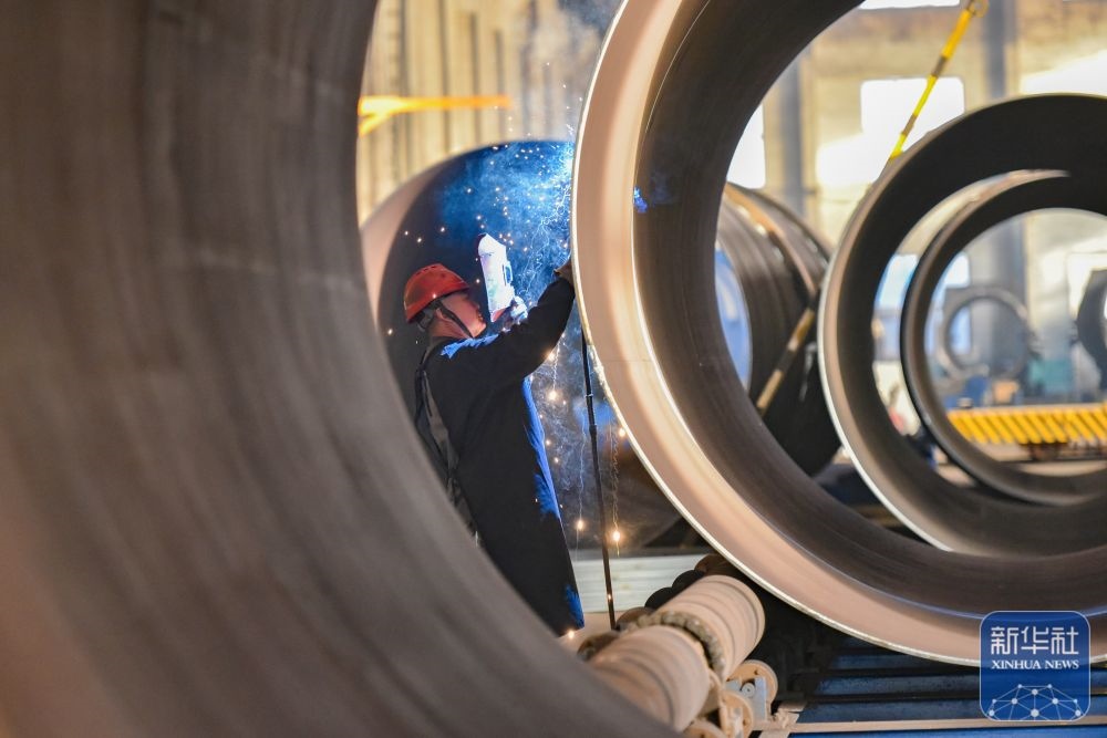 ↑ 12月15日,在位于江蘇省江都高新技術(shù)產(chǎn)業(yè)開(kāi)發(fā)區(qū)的江蘇廣泓重工設(shè)備有限公司,工人在頂管機(jī)總裝車間作業(yè)。新華社發(fā)(任飛攝)