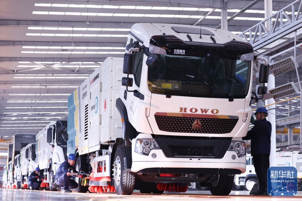 ↑ 12月15日,在河北省石家莊市的冀中裝備石煤機(jī)公司,工人在組裝新能源環(huán)衛(wèi)車。新華社發(fā)(梁子棟攝)