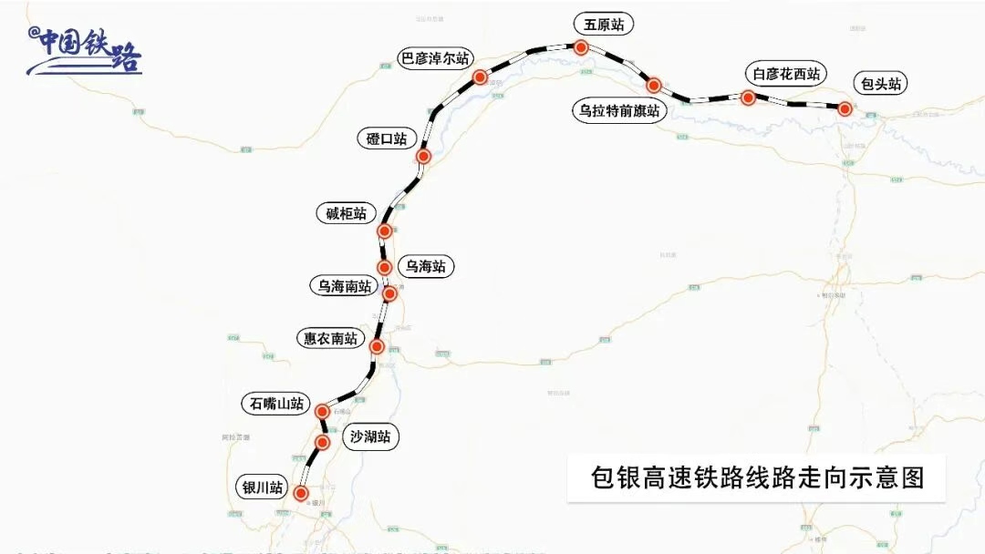 包銀高鐵起自包頭站,經(jīng)內(nèi)蒙古自治區(qū)包頭市、巴彥淖爾市、鄂爾多斯市、烏海市,寧夏回族自治區(qū)石嘴山市、銀川市,接入銀川站,正線全長(zhǎng)519公里,設(shè)計(jì)時(shí)速250公里,實(shí)行分段建設(shè),其中,惠農(nóng)至銀川段全長(zhǎng)97公里,已于2024年10月開(kāi)通運(yùn)營(yíng),此次開(kāi)通的包頭至惠農(nóng)段全長(zhǎng)422公里,共設(shè)10座車站。